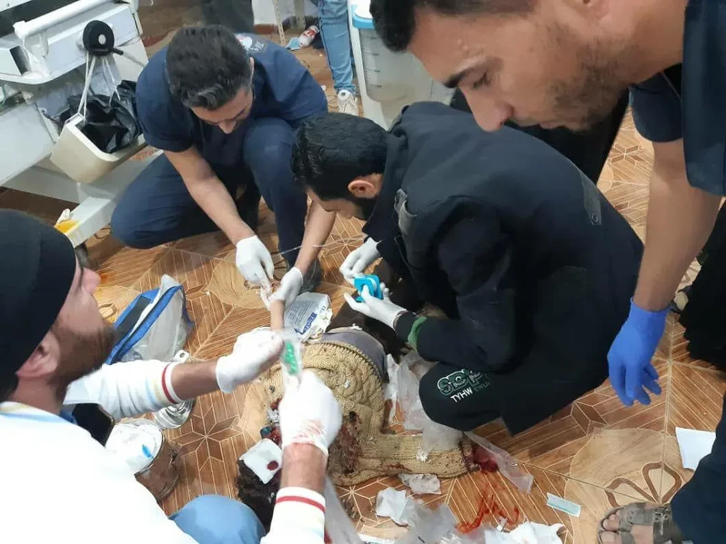 Всего за декабрь были обстреляны 13 больниц и медицинских учреждений: национальная больница в Мааррат Ан-Нууман, больница ас-Салам, больница Гадфа, больница Таль Меннис, больница Шнан, больница Киван в Тал Сафра. Центр здоровья в Мааррат Хурме. Больница Аль-Амаль в Таль Сафре. Национальная больница в Джиср аш-Шухур. Больницы в Кофранбиле, специализированная больница Удай в Сарагебе, медицинский центр в Джарджаназе, больница Аль-Уумума в Джабаль аз-Завья и больница Аль-Каах…
