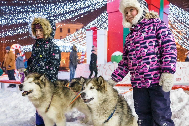 Дед Мороз и Снегурочка устраивают танцевальные вечера. Желающие могут сфотографироваться с маламутами.