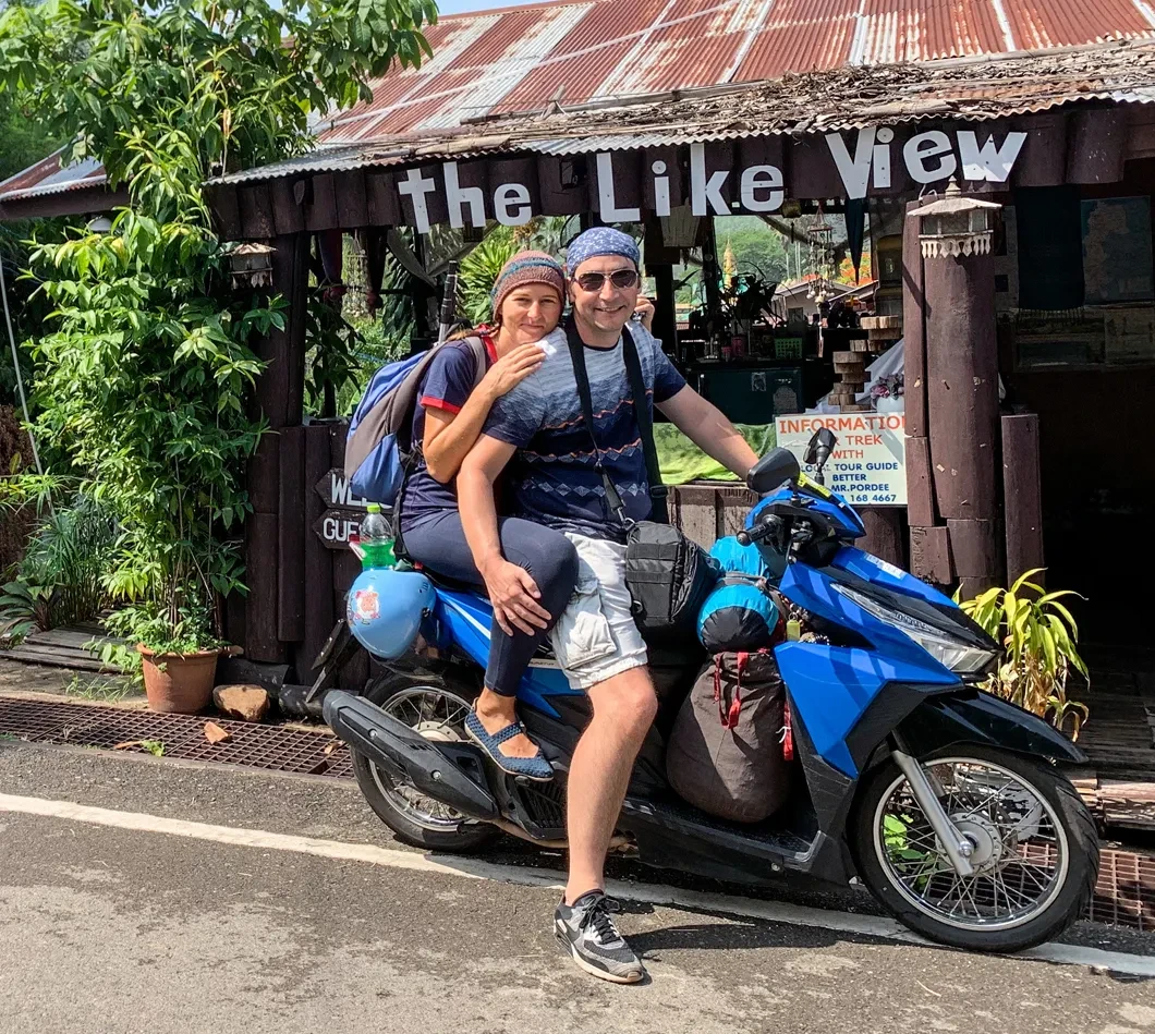 Они оседлали маленький скутер и отправились петлять по горам. Их ждали приключения: они заехали на макушку самой высокой горы в Тайланде, у них отказали тормоза на спуске, они забрались в самые непроходимые джунгли, прокололи шину, встретили опасных животных и добродушных жителей гор, купались под водопадами, ночевали в курятнике, вообще не нашли ночлега, уснули на муравейнике, промокли до нитки и промочили все вещи…