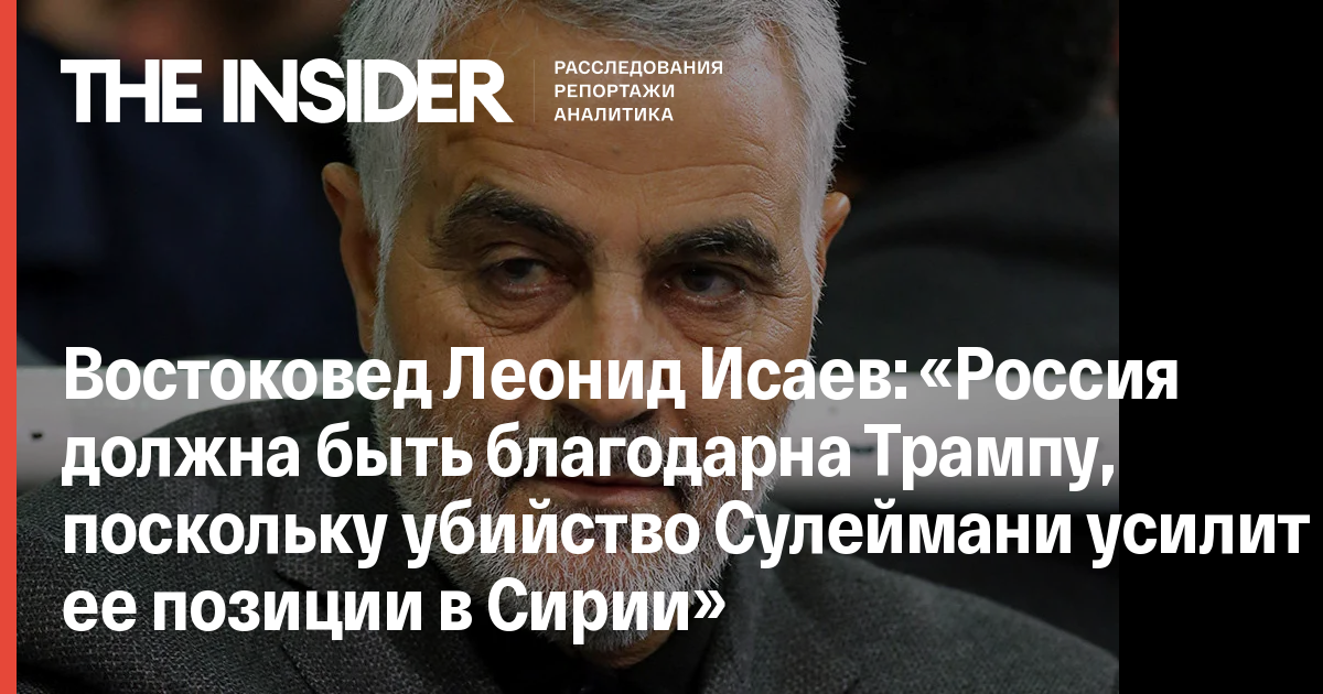 Востоковед Леонид Исаев: «Россия должна быть благодарна Трампу, поскольку убийство Сулеймани усилит ее позиции в Сирии»