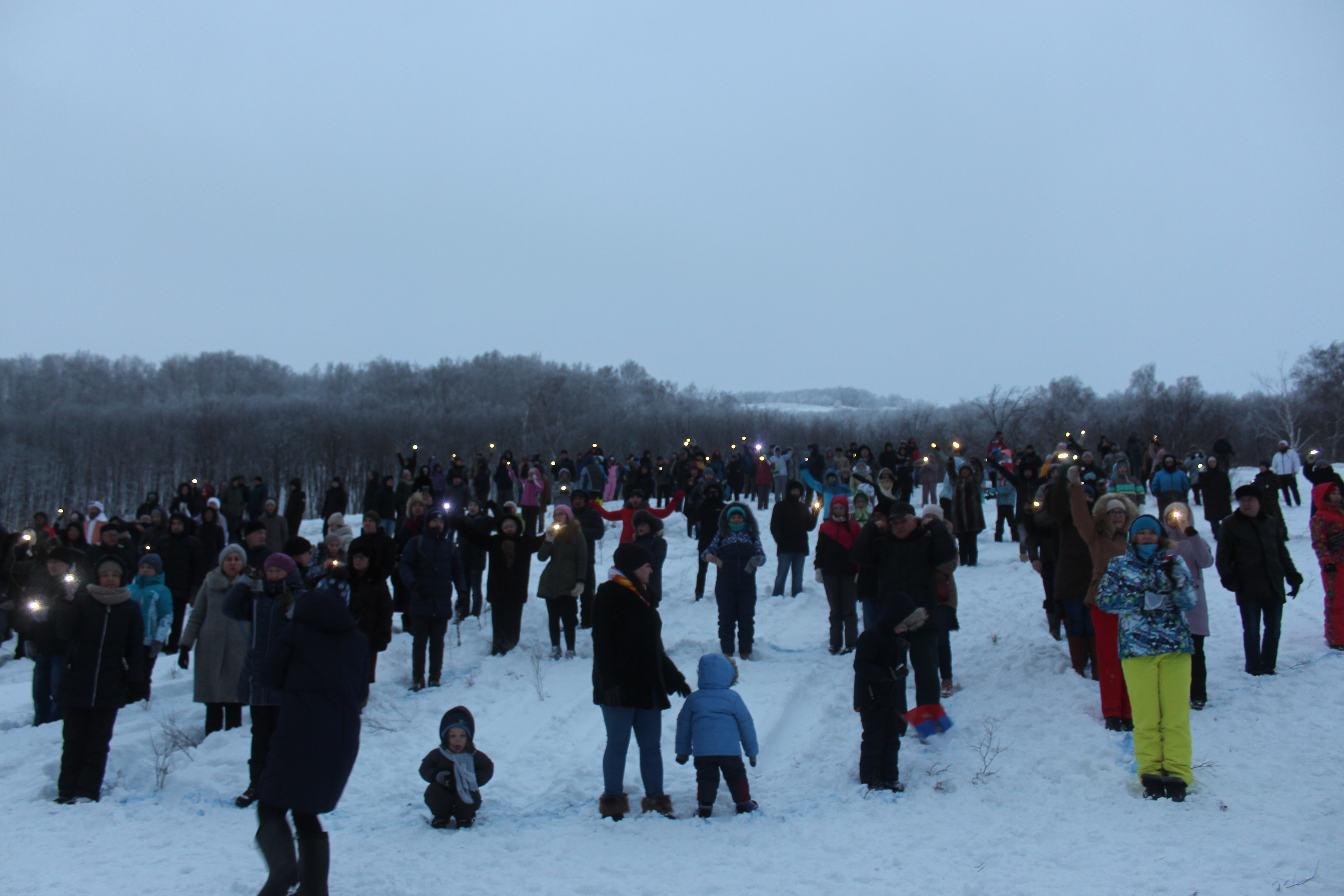 В конце акции защитники горы поднялись на склон, выстроившись в надпись "Куштау, живи!", и зажгли фонарики.