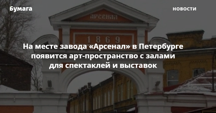 Петербургские власти планируют открыть в корпусах завода «Арсенал» новое арт-пространство со сценическими и репетиционными залами для молодых артистов. Об этом сообщает ТАСС со ссылкой на вице-губернатора Владимира Кириллова.
