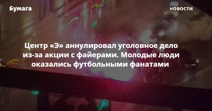 Как пишет издание, задержанные молодые люди рассказали, что скандировали строки песни и футбольные кричалки. После просмотра видеоматериалов сотрудники Центра «Э» аннулировали уголовное дело, но составили в отношении фанатов административные протоколы за мелкое хулиганство и переход дороги в неположенном месте.