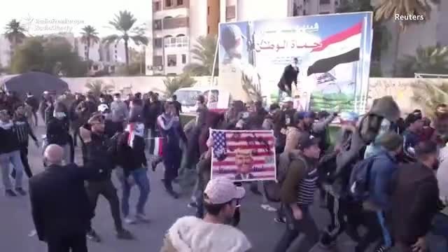 После убийства иранского генерала Касема Сулеймани тысячи иракцев участвовали в траурной процессии за его гробом, который был доставлен в аэропорт и отправлен в Тегеран.