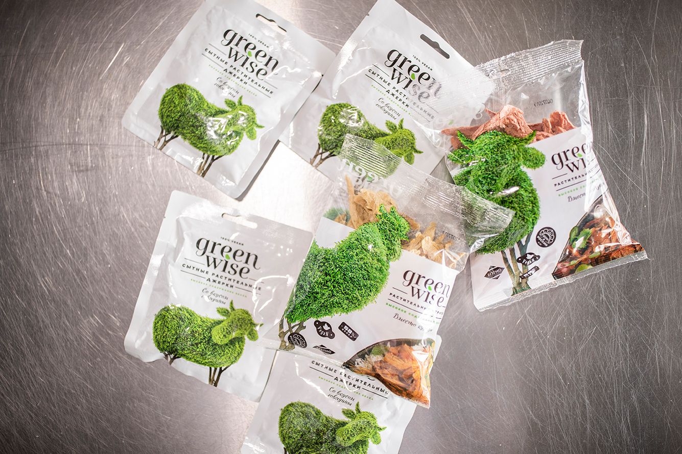 В маленькой комнатке большого производственного предприятия у конвейера стоит несколько человек. Один из них подает в аппарат растительный порошок, который внутри механизма подвергается нагреванию и экструзии, — белок меняет структуру и превращается в волокнистые куски, которые по виду сложно отличить от мяса. Работники кладут полученное «мясо» в другую машину, которая рубит куски. Затем продукт отправляется в камеру для сушки. Так производятся джерки — и органолептически они действительно очень похожи на вяленое мясо. Другой товар Greenwise — как бы сырое мясо — на вкус тоже мало похож на еду из растительного сырья; после обжарки кусочки отдаленно напоминают стейк средней прожарки.