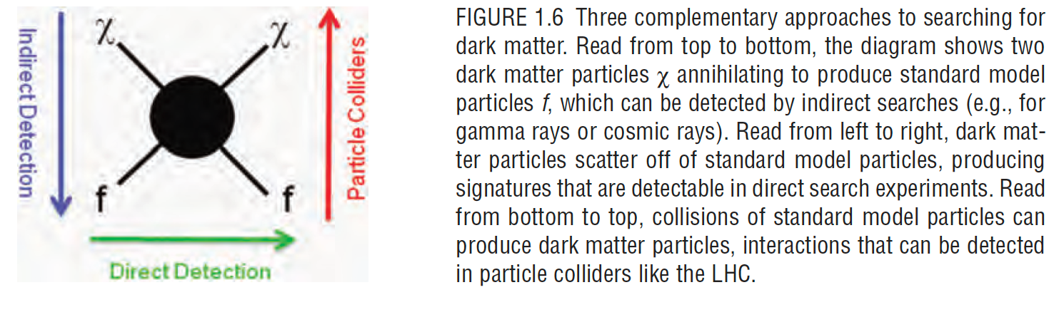 Мы знаем про темную материю сейчас почти все, кроме самого главного — из каких частиц она состоит? Пока даже непонятно, как подступиться к этой задаче — Decadal Survey осторожно предлагал определить вероятность рассеяния гипотетических частиц темной материи на обыкновенных частицах, в том числе в экспериментах Большого Адронного коллайдера (БАК). Они дали только ряд ограничений на возможные величины параметров, но не сильно приблизились к обнаружению самих частиц.