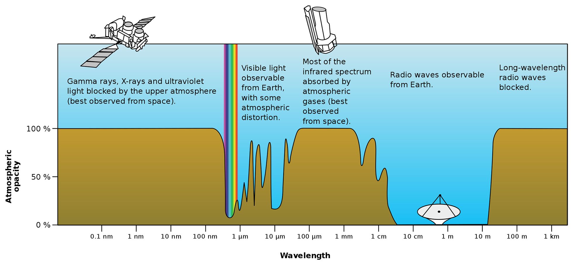 Для этого нужно держать в голове две вещи. Первая — это картинка поглощения атмосферой излучения разной длины волны. Вторая — это факт расширения Вселенной. Согласно закону Доплера, свет галактик и квазаров из самых дальних ее уголков будет смещаться в область длинных волн. Поэтому неудивительно, что в свете повышенного интереса к ранней истории Вселенной, в следующее десятилетие особенно много новых телескопов будут работать в инфракрасном, субмиллиметровом или радиодиапазоне.