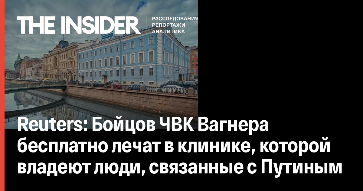 Клиника страховой компании «Согаз» в Санкт-Петербурге, которой управляют и частично владеют связанные с Владимиром Путиным люди, бесплатно лечит бойцов из ЧВК Вагнера, воевавших в Сирии и Ливии, сообщает Reuters со ссылкой на источники, знакомые с работой клиники.