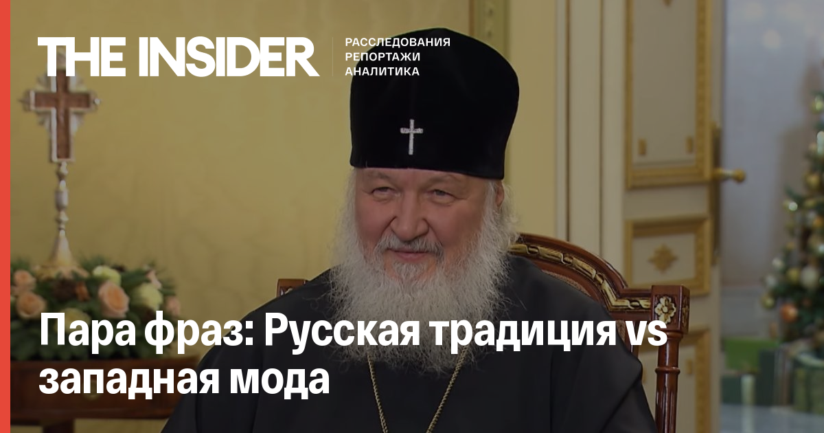 «Патриарх Кирилл считает, что появление нашумевшего законопроекта о профилактике семейно-бытового насилии является данью западной моде.«Само понятие «семейно-бытовое насилие» — это нечто, заимствованное со стороны, из-за рубежа. Принятие соответствующих законов в зарубежных странах, видимо, создает в сознании наших законодателей некую зависимость от этих иностранных новаций, желание привести наши российские законы в соответствие с тем, что существует в других странах», — сказал он в рождественском интервью… Между тем, по мнению предстоятеля, всякое вторжение извне в семейные отношения несет в себе очень большие негативные последствия… Он полагает, что «при помощи милиционера, при помощи общественных активистов невозможно восстановить любовь между супругами», поэтому «корень проблемы лежит не вовне, а внутри, в той самой сфере, которой занимается Церковь»… При этом патриарх высказал мнение, что для того, чтобы любить другого, нужно другому что-то отдавать. «Нет любви без жертвы, — отметил он. — Ну, «жертва» — громкое слово; нет любви без отдачи. Если супруг ничего не отдает жене, то нет любви. Если жена ничего не отдает супругу, тоже нет любви. Это удивительная тайна самоотдачи себя во имя другого; это и есть не только проявление любви, но и сама природа любви».