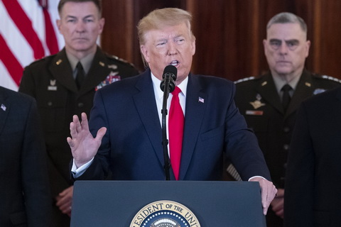 3. 08.01.2020. Президент США Дональд Трамп выступил с заявлением после ракетного удара Ирана по американским объектам в Ираке. MICHAEL REYNOLDS/EPA/TASS
