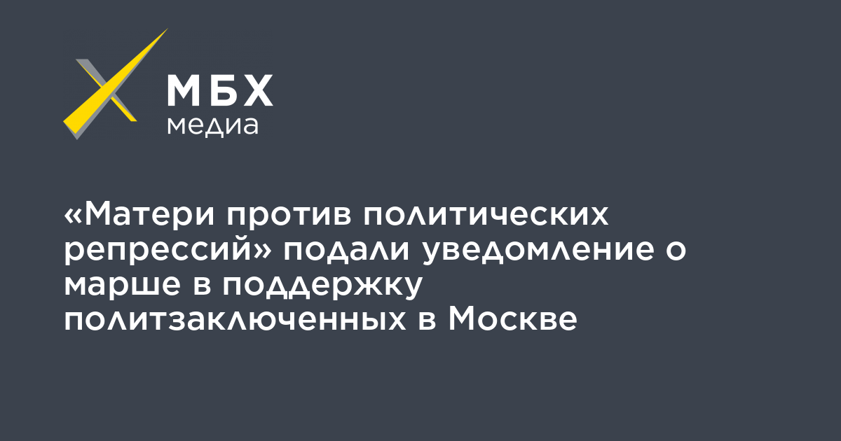 Движение «Матери против политических репрессий» подало в правительство Москвы уведомление о проведении шествия в поддержку политических заключенных, сообщает «Новая газета».