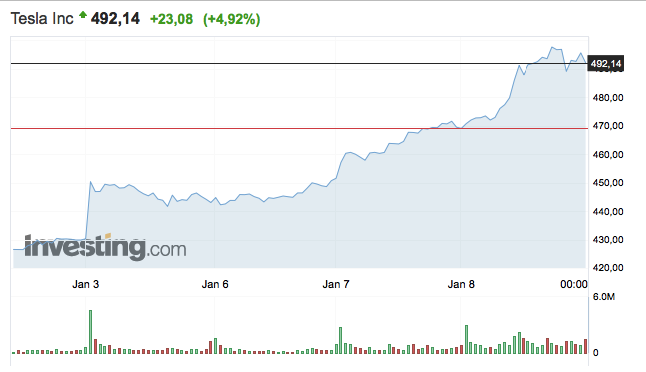 Сегодня стоимость акций компании выросла еще на 5%, а всего с начала года котировки Tesla выросли на 17%. Рост акций компании понятен: это связано с неожиданно высокой прибылью в третьем квартале 2019 года (около $143 млн), открытием первого завода в Китае (об этом мы писали здесь). За последние три месяца акции Tesla выросли более чем вдвое.