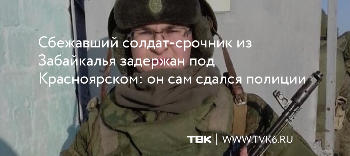 6 января краевые полицейские задержали солдата-срочника Артура Хакимова, который 3 января сбежал из воинской части в Забайкальском крае. Он сам пришел в отделение полиции в Ачинске.