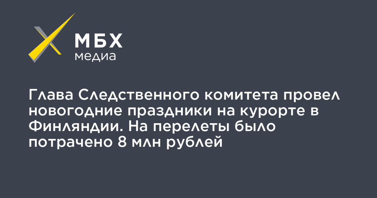 Глава Следственного комитета провел новогодние праздники на курорте в Финляндии. На перелеты было потрачено 8 млн рублей
