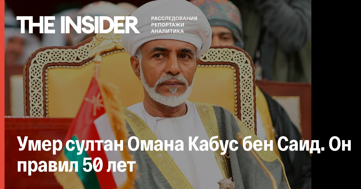 Султан Омана Кабус бен Саид умер после продолжительной болезни. Как сообщает Reuters, ему было 79 лет.