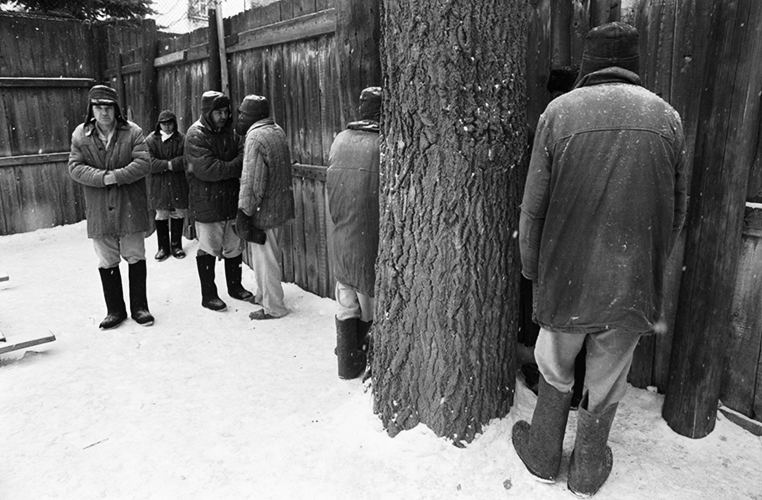 Третьей мерой наказания была, как у нас называлось, укрутка. Это использование влажной парусины, которой обматывался пациент от пяток до головы. Обматывался настолько плотно, что ему было трудно дышать. Когда эта парусина начинала сохнуть, она садилась, сжималась, и человек чувствовал себя еще хуже [7].