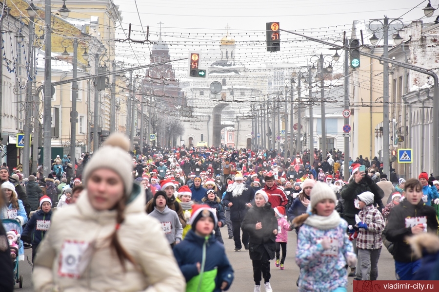 Старт акции был дан у Золотых Ворот. На 600-метровую дистанцию участники вышли в новогодних костюмах Деда Мороза, Снегурочки, мыши, снеговика и даже единорога. Владимирцы бежали до Соборной площади с друзьями, семьями и домашними питомцами.