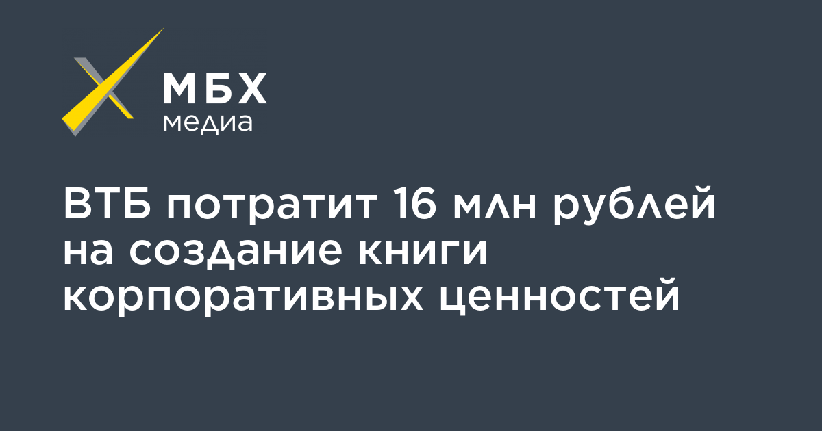 ВТБ потратит 16 млн рублей на создание книги корпоративных ценностей