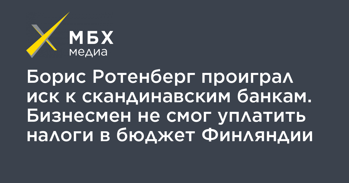 Борис Ротенберг проиграл иск к скандинавским банкам. Бизнесмен не смог уплатить налоги в бюджет Финляндии