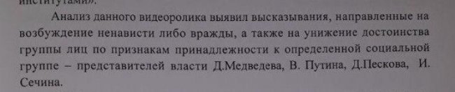 Житель Татарстана Радислав Федоров опубликовал в социальной сети «ВКонтакте» два видеоролика. Один из них — «Димон, ты кто такой» — по мнению суда, содержит высказывания, «направленные на возбуждение ненависти либо вражды, а также на унижение достоинства группы лиц по признакам принадлежности к определенной социальной группе — представителей власти Д. Медведева, В. Путина, Д. Пескова, И. Сечина».