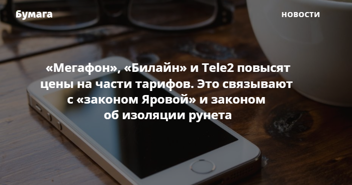 В аналитическом агентстве Content Review связали увеличение стоимости тарифов с расходами на выполнение требований «закона Яровой» и закона об изоляции Рунета. Аналитики прогнозируют, что услуги мобильной связи в России в 2020 году могут подорожать на 17–18 %.