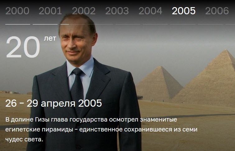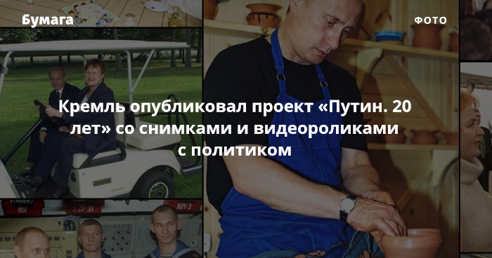 На сайте Кремля в конце декабря 2019 года опубликовали альбом к 20-летию Владимира Путина у власти. 13 января архив пополнился новыми кадрами, теперь там доступны фотографии, сделанные до 2009 года.