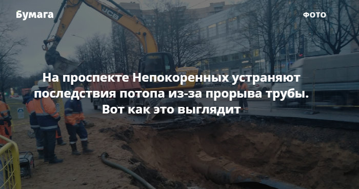 Как видно на опубликованных фотографиях с места происшествия, там вырыли большую яму, ведущую к трубе для ее замены. «Водоканал» отчитался, что остановил потоки воды к 22:00. На адресе также работали машины, которые откачивали воду с проезжей части. Воду в жилые дома по соседству также вернули, отчитались в организации.