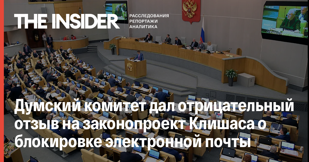 Думский комитет дал отрицательный отзыв на законопроект Клишаса о блокировке электронной почты