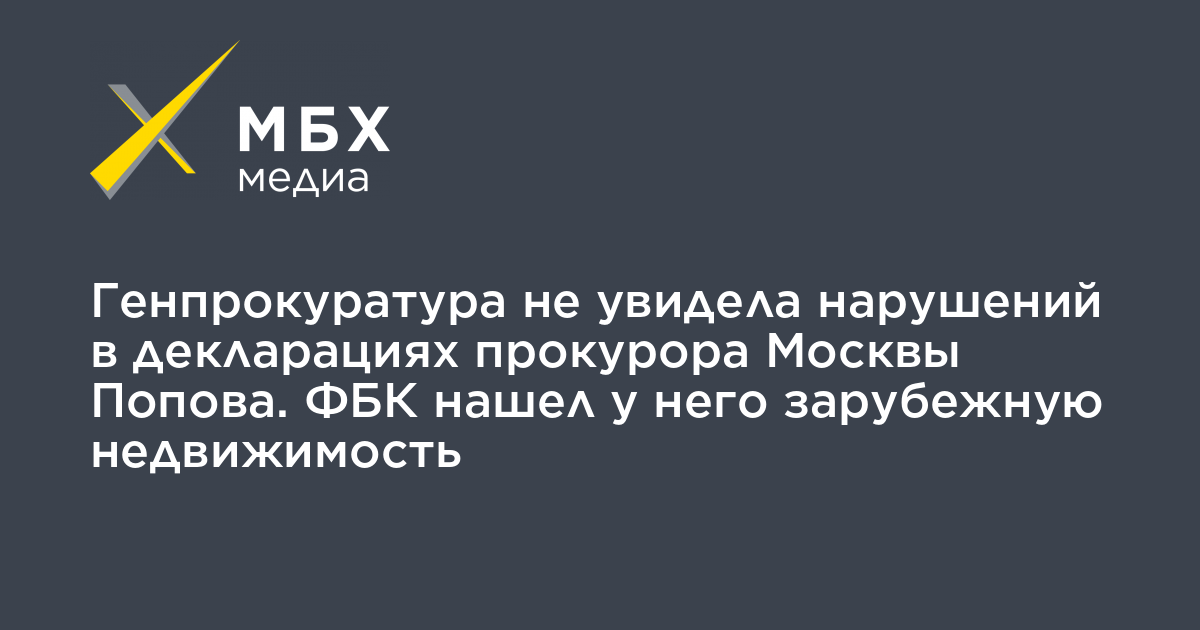 Генпрокуратура не увидела нарушений в декларациях прокурора Москвы Попова. ФБК нашел у него зарубежную недвижимость