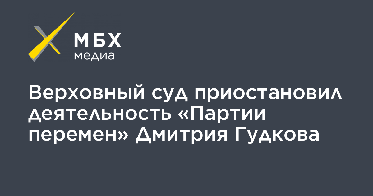 Верховный суд приостановил на три месяца деятельность «Партии перемен» (официальное название — «Гражданская инициатива») Дмитрия Гудкова по требованию Минюста. Об этом сообщает корреспондент «МБХ медиа».