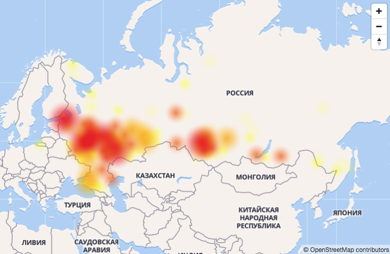 Карта сбоев с сайта DownDetector
