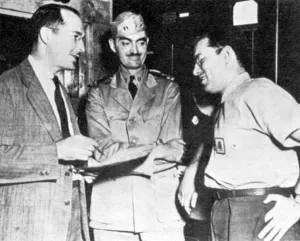 2 сентября 1945 года война закончилась, и Соединенные Штаты с ликованием праздновали День Победы. А 7 сентября 1945 года Айзек получил повестку в армию. Он прошел начальную подготовку в лагере в Виргинии, который находился достаточно близко от его дома, Айзек мог часто видеть Гертруду. Он надеялся, что будет служить рядом с Нью-Йорком, но судьба распорядилась по-своему. Очередная атомная бомба должна была быть испытана на атолле Бикини, для участия в этом проекте отрядили нескольких солдат, среди них был и рядовой Азимов. Не исключено, что если бы Айзек стал участником испытаний этой бомбы, то заразился бы лучевой болезнью и умер гораздо раньше отведенных ему судьбой 72 лет. Но из-за банальной канцелярской ошибки Азимова уволили в запас намного раньше истечения срока службы. В итоге Айзек пробыл в армии лишь девять месяцев.