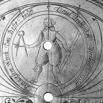 Еще об одной астролябии автор узнал через цепочку своих знакомых. Он нашел ее в отделе редких книг Национальной библиотеки прикрепленной шурупом к стене кабинета. В XIX веке эта библиотека называлась Императорской публичной библиотекой и долгое время была еще и местом хранения различных редкостей. Уже при советской власти научные инструменты были переданы в музеи. Но одна астролябия осталась. Можно предположить: из-за того, что у нее сохранился только корпус. Тимпан, паук, алидада отсутствуют. Но этот корпус оказался очень информативным. Тут есть имя заказчика инструмента — султан Баязид II, имя мастера — Ахмар ар-Руми, год изготовления — 906 год хиджры (1500–1501 годы). Редко выпадает такая удача — через пять веков получить подробную визитную карточку.