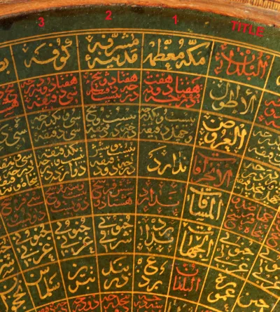 Больше всего планисферных астролябий в Эрмитаже. Их здесь девять. И только одну можно найти в экспозиции — это астролябия Петра I. Остальные лежат в запасниках. К счастью, автору было позволено познакомиться с ними и позже сделать описание двух из них — астролябии Петра и большой деревянной астролябии, доставшейся России в морском сражении. Эта деревянная астролябия приоткрыла тайну арабской единицы длины — фарсаха. Как арабы определяли длину фарсаха? Одни считали, что это расстояние, на котором в пустыне можно разглядеть верблюда. Другие заявляли, что на таком расстоянии можно услышать грохот барабанов. В «Википедии» даны три значения фарсаха — от 5549 до 8534 м, но вообще-то эта единица длины не определена с такой точностью. Разные исследователи оценивали его от 5 до 10 км. Справочник городов, размещенный на деревянной астролябии, позволил сравнить около сотни средневековых расстояний с современными. Фарсах шесть веков назад был равен 7500 м, погрешность результата — 5%4.