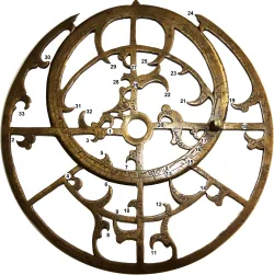 Здесь я расскажу только про планисферные астролябии. Их в России всего 20. Термин «планисферные» означает метод проецирования звезд на плоскость инструмента. Не будем путать их с достаточно простыми геодезическими астролябиями, изготовленными в XVIII–XIX веках и имеющими лишь одну функцию — измерение горизонтальных углов.