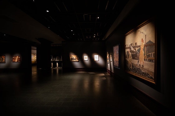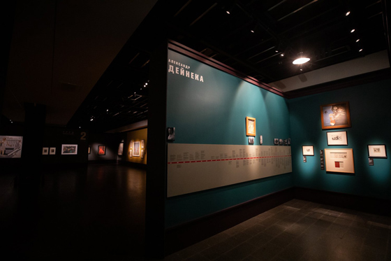 © Михаил Вильчук Верхний ярус с монументальными спортивно-милитаристскими полотнами, наоборот, освещен довольно сильно и завершается инсталляцией: скульптурные футболисты Дейнеки сражаются на реальном футбольном поле с воротами и искусственной травой. На открытии Горланов объяснял, что контраст так и задумывался, и даже говорил про некий выход к свету из преисподней. В реальности мрачным эпизодом стоило бы как раз считать поздний период обоих авторов, почти одинаково придавленных властью в 1940-е — 1950-е. Эту точку зрения в предисловии к каталогу, надо сказать, вполне однозначно высказывает и сам Михайловский, поэтому световая партитура остается непонятной.