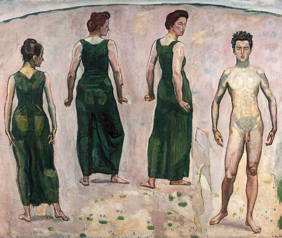© Старая и Новая национальные галереи, Музей Берггрюна, Берлин Фердинанд Ходлер. Восхищение юностью II. Ок. 1904 Кстати, о товарищах. Вот чего действительно оказалось жаль, так это того, что на единственной общей фотографии 1937 года, где Дейнека запечатлен рядом с Самохваловым, и в экспозиции, и в каталоге остались безымянными их спутницы и музы — первая жена художника Екатерина Самохвалова и ученица Дейнеки Ксана Купецио. Подробнее об этом (вместе с полной историей снимка) в своем фейсбуке написал Ильдар Галеев. Так что лишнего феминизма выставка не продемонстрировала.
