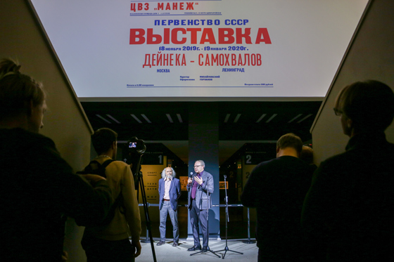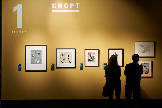 © Михаил Вильчук Торжественное открытие выставки для гостей Культурного форума Ничего удивительного, что и в этом экспортном решении парадно-советское оказалось экспортировано в российское — и однозначно перевесило. Когда политики и кураторы говорили речи под огромным экраном со стилизованной афишей «Первенство СССР», это вызывало поистине жуткое и реальное ощущение возврата не тридцатых, а семидесятых. Хорошо бы эти юбилейные воспоминания не трансформировались в ностальгию по советской культурной политике.