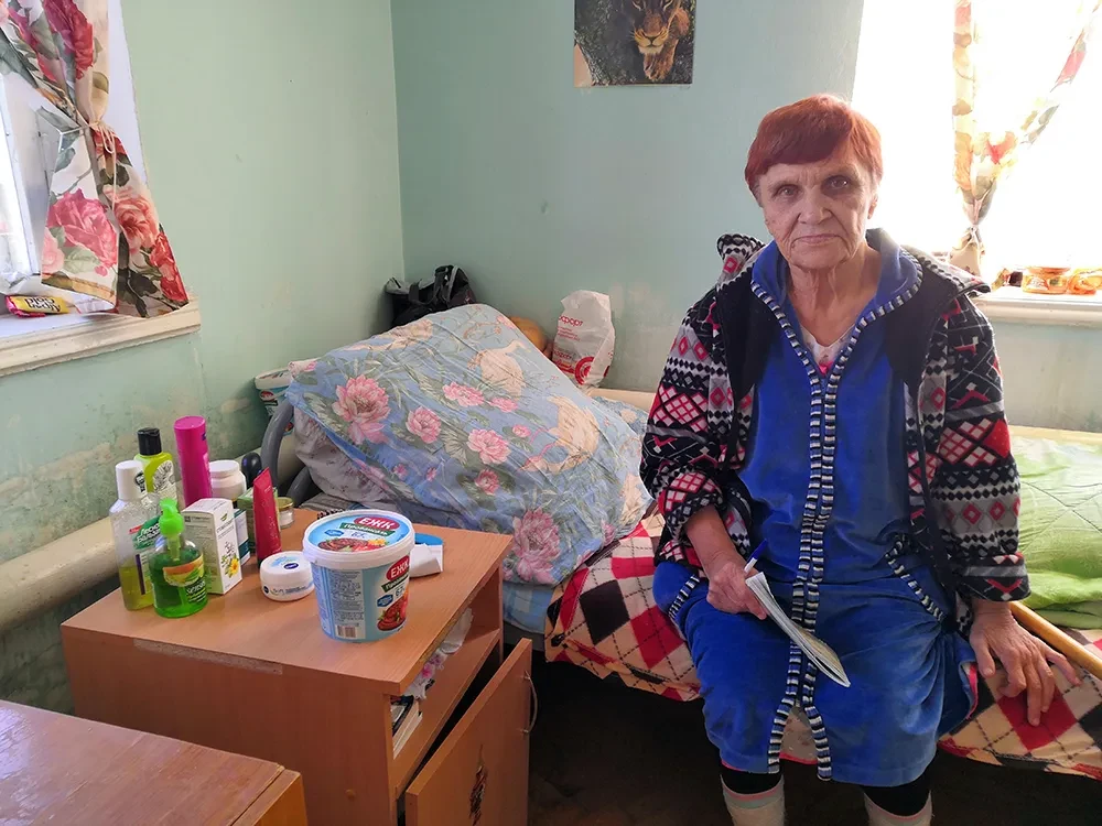 «Жили на мою пенсию, а я не доедала, соседи меня кормили. Сожитель ее нигде не работает, они пили на мою пенсию, — говорит пенсионерка. — И когда сил уже не осталось, ушла жить в подъезд. С лестничной клетки попала сюда».
