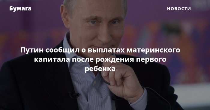 Владимир Путин в послании Федеральному собранию объявил, что в России будут выплачивать материнский капитал при рождении первого ребенка. Об этом сообщает ТАСС.