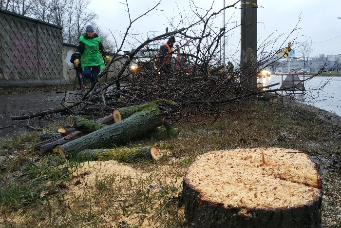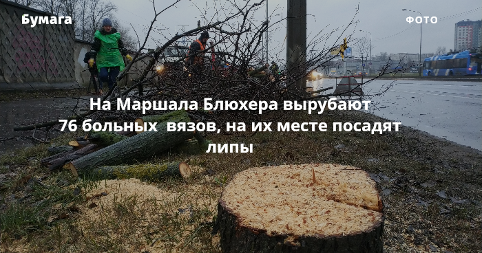 На проспекте Маршала Блюхера вырубают 76 вязов