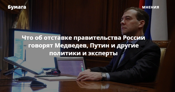 Правительство Российской Федерации во главе с премьер-министром Дмитрием Медведевым в полном составе подало в отставку. Это произошло вскоре после обращения президента РФ Владимира Путина к Федеральному собранию, в котором он заявил о необходимости внести изменения в Конституцию.