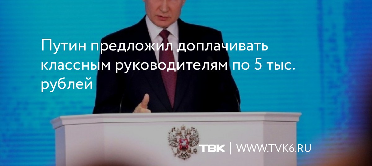 Владимир Путин предложил доплачивать классным руководителям в российских школах по 5 тыс. руб. в месяц. Заявление прозвучало в его послании Федеральному собранию РФ 15 января 2020 г.