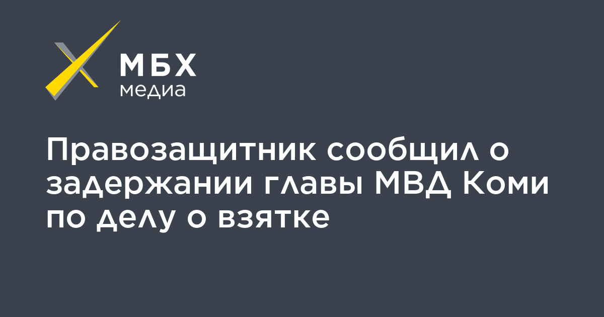 Правозащитник сообщил о задержании главы МВД Коми по делу о взятке