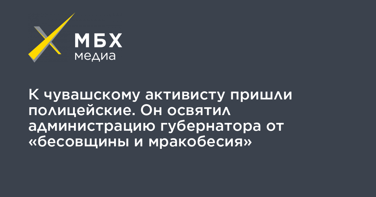 В Чувашии сотрудники уголовного розыска пришли к активисту Юрию Сидорову, который провел обряд освящения здания администрации главы республики от «бесовщины и мракобесия» в знак протеста против коррупции. Об этом активист рассказал «МБХ медиа».