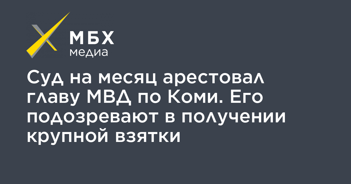 Суд на месяц арестовал главу МВД по Коми. Его подозревают в получении крупной взятки