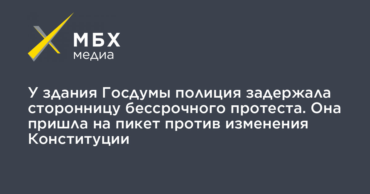 У здания Госдумы полиция задержала сторонницу бессрочного протеста. Она пришла на пикет против изменения Конституции