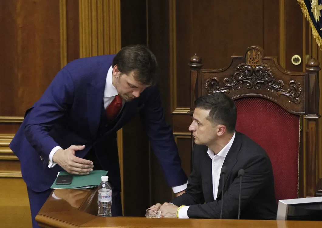Президент Украины Владимир Зеленский (справа) и премьер-министр Алексей Гончарук (слева). Фото: Zuma/ТАСС