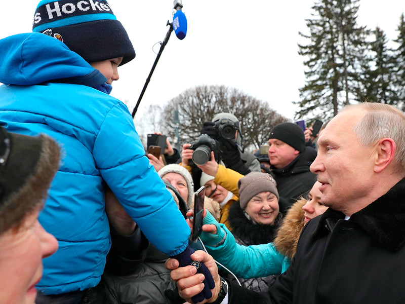 При посещении Петербурга Путин возложил цветы к монументу "Мать-Родина" на Пискаревском мемориальном кладбище и к памятнику "Рубежный камень" на Невском пятачке, а также вручил медали "75 лет Победы в Великой Отечественной войне 1941-1945 годов" четырем ветеранам - Валентине Андроновой, Екатерине Тутуровой, Анатолию Климову и Борису Феофанову.