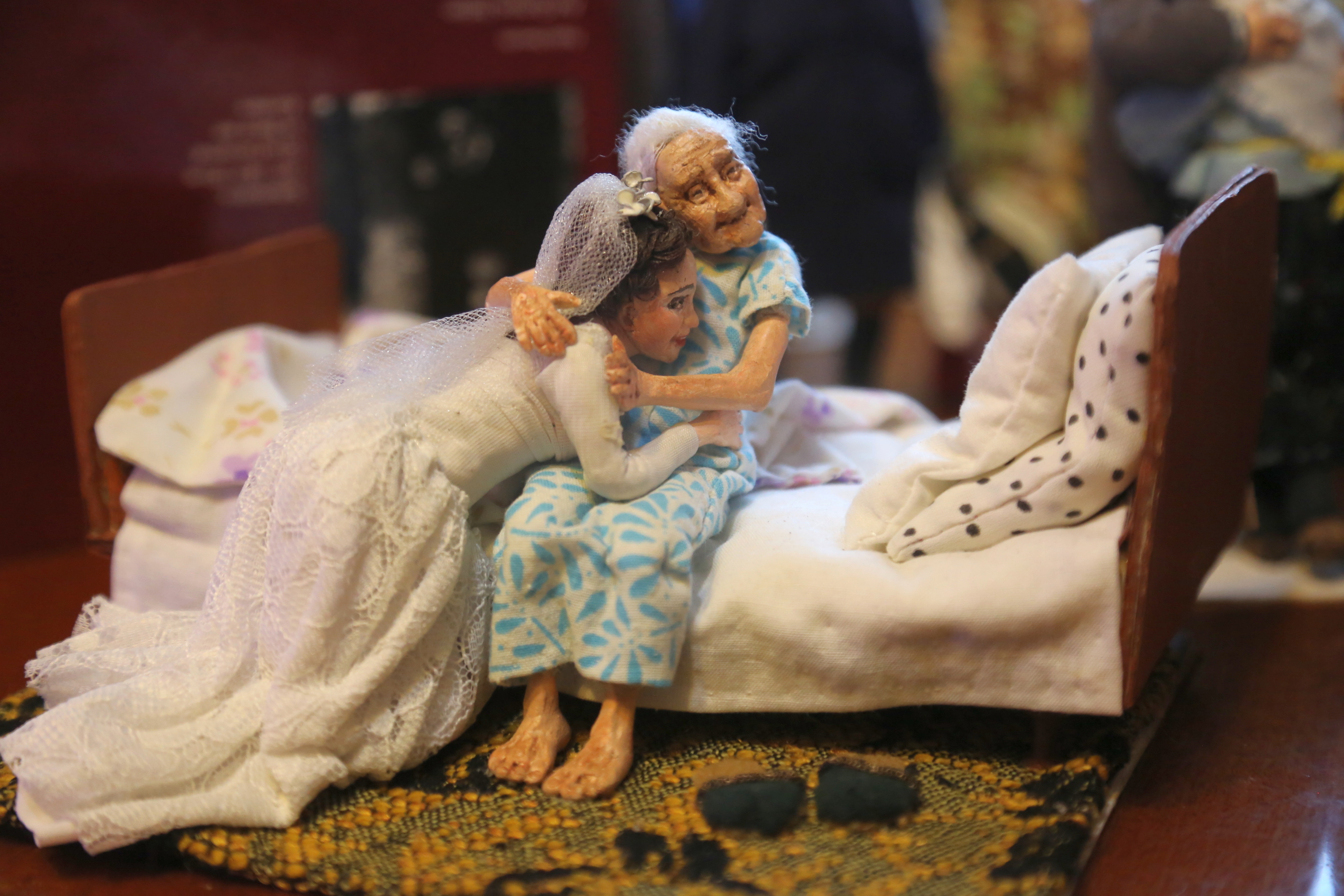Одной из первых работ коллекции "Дорогие мои старики" была вот эта миниатюра, которую автор назвала "Разговор с дочерью". Это одна из самых любимых композиций Ирины Верхградской, возможно, потому, что какое время им пришлось жить с дочерью в разлуке – девушка переехала в Новосибирск, а мать оставалась в Казахстане.